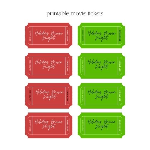 Print them out, cut them apart, and hand each family member their own “official” Christmas Movie Night ticket.
