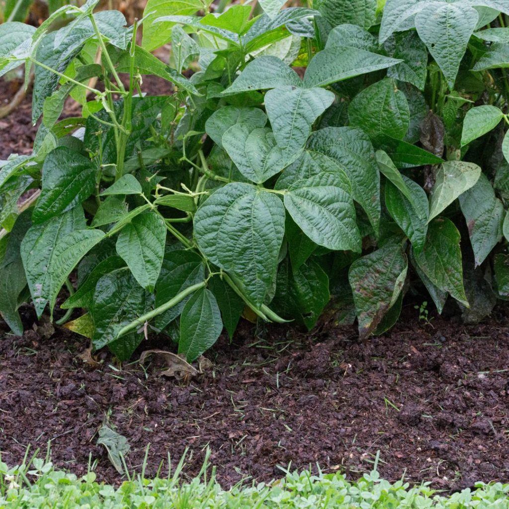 Bush beans are compact, low-growing plants that don’t need support. They mature faster—usually within 50–60 days—and produce most of their harvest over a two-week window. I like to plant bush beans in my raised beds in front of my tomatoes and peppers.