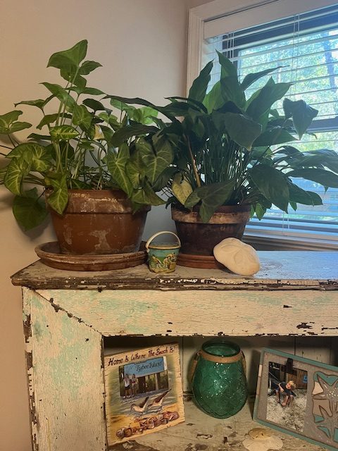 If you’re not sure what your plant prefers, look it up before choosing a location. Once you’ve found a good spot, try not to move them around too much — some plants, like peace lilies, don’t appreciate frequent changes. All of my plants except for the aloe are medium light plants.